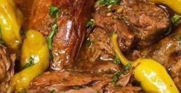 Ingredients: 1 Chuck Roast 1 Packet Hidden Valley Ranch Dressing Mix 1 Packet McCormick Au Jus mix 5 whole pepperoncini…
