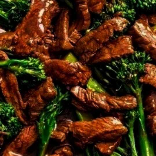 In skillet, heat the oil over heat. Sear the beef strips for 2 to 3 minutes. Add onion, bell pepper and, if desired, garlic and ginger. Cook for 1 to 2 minutes.