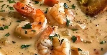 Ingredients: Peel and devein one pound of big shrimp and sauté in three tablespoons of olive oil. minced garlic four…