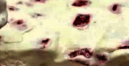 Channel and dispose of oil.Spread hamburger onto the lower part of a 9×13-inch dish container. Mix in bacon pieces.