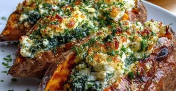 Spinach & Ricotta Stuffed Sweet Potatoes with Herb Drizzle Ingredients: Sweet Potatoes: 4 medium sweet potatoes 1 tbsp (15 ml)…