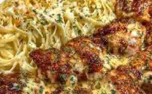 A rich and comforting pasta dish featuring tender chicken bites, creamy Alfredo sauce, and perfectly cooked linguine — the ultimate…