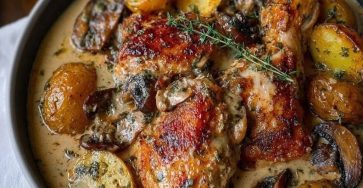 Here is a delicious and detailed recipe for Creamy Herb Chicken with Potatoes & Mushrooms. Creamy Herb Chicken with Potatoes…