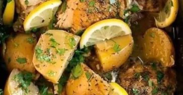 Ingredients: – 4 bone-in, skin-on chicken thighs– 1 pound baby potatoes, halved– 1 lemon, sliced– 4 cloves garlic, minced– 1/4…