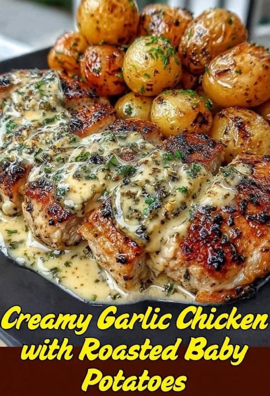 Servez le poulet crémeux à l’ail avec des asperges grillées et des tomates.