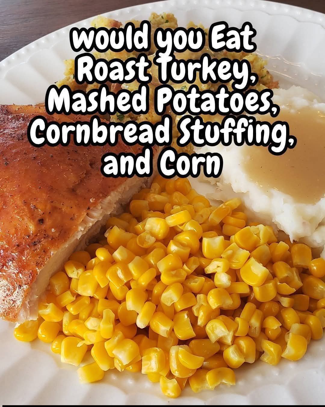 Search Results for: Roast Turkey, Mashed Potatoes, Cornbread Stuffing, and Corn