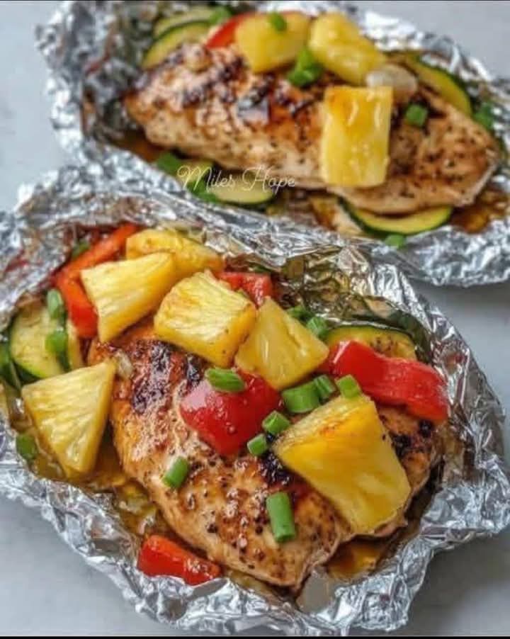 - Bake: Place the foil packets on a baking sheet and bake in the preheated oven for about 25-30 minutes, or until the chicken is fully cooked and reaches an internal temperature of 165°F (75°C).